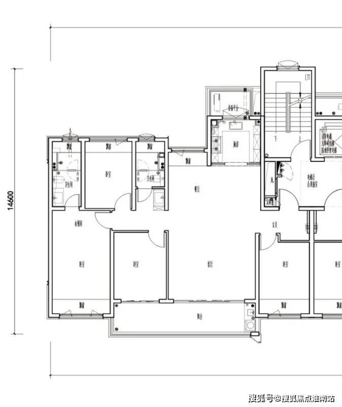 20#洋房标准层平面图如下:同步曝光1个户型,2梯4户。