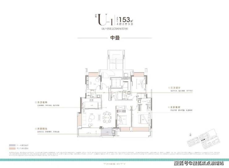 项目的中叠 四开间朝南,超大IMAX的采光面,妥妥市区豪宅大平层的尺度感。