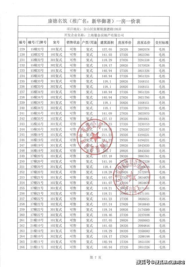 一房一价表如下: