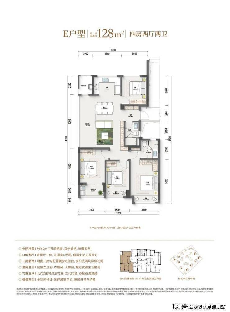 (128-139方四房户型,滑动查看更多户型图)