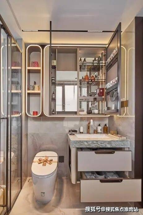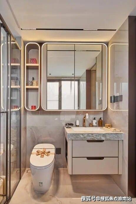 保利天奕特别关注到女性的生活需求,专门在卫生间配备了 科勒美颜龙头、美妆镜柜、美妆冰箱,采用 “顶+面双补光照明”,能把“女本位”需求做到如此细致,目前没有几个项目能做到!