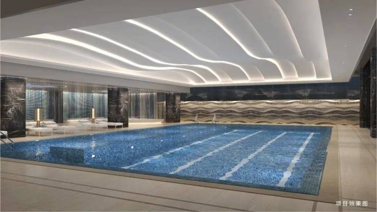 以“倒立的卢浮宫”的艺术形态,将天空引入会所,联通商业中心与泳池健康中心,成为生活场域的黄金基底。