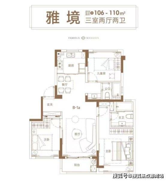 此外,项目还有建面约106-110㎡三房可供选择,户型图如下