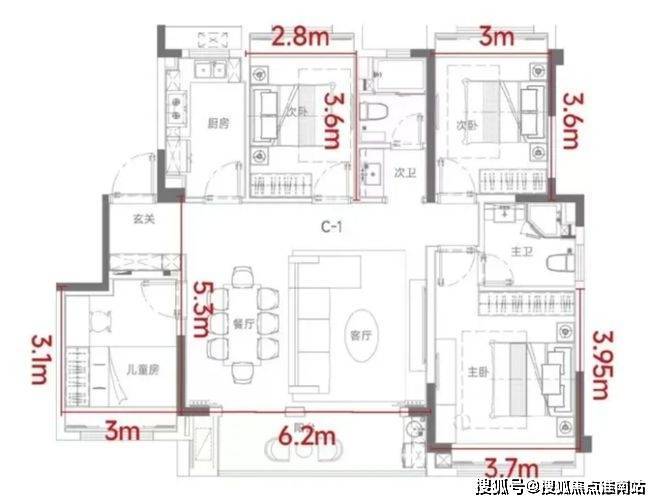 它不仅做到了四房设计,更是做到了6.2米的宽厅,尺度媲美大平层,北向房间还能够放置1.5米的床。