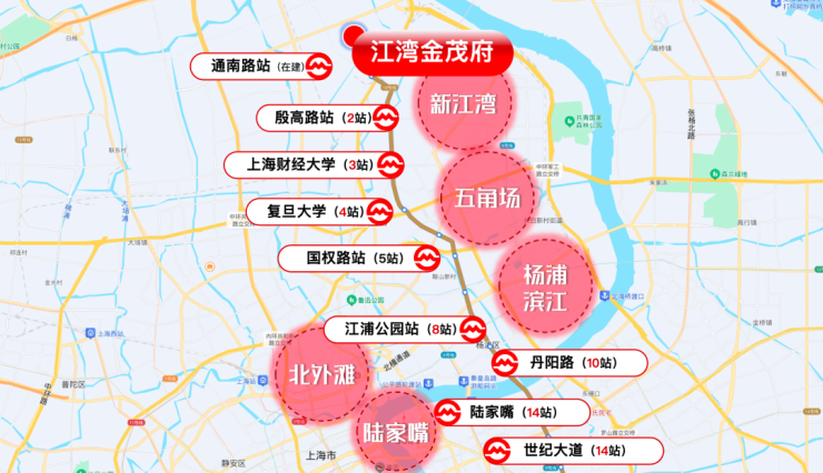 复旦、上财 → 五角场 → 杨浦滨江 → 陆家嘴 → 张江科学城
