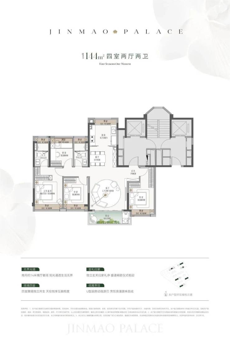 约144㎡4房更是做到了一般只有接近200㎡大户型才有的一梯一户,在北上海也是非常罕见的存在!