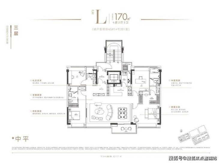 中平户型采用大平层的“平墅”设计,户型结构上的超级尺度感,在目前整个市场上都是极为罕见的。而且,170中平户型,类5开间朝南+边套主卧270°的飘窗,给生活更多奢享。
