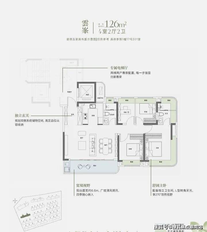 建面约126㎡四房:二批次主力产品,功能性强,得房率高
