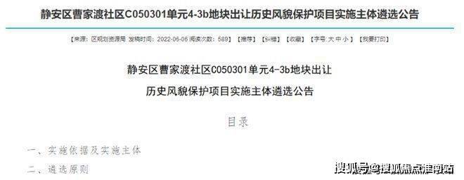 2022年6月,静安区人民政府官宣了曹家渡社区C050301单元4-3b地块的出让公告。