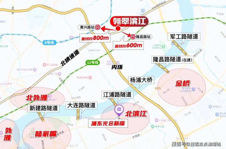 轨交方面,项目距离12号线隆昌路站直线约600米、距离8号线黄兴路站直线约800米,步行范围内双轨交环绕。