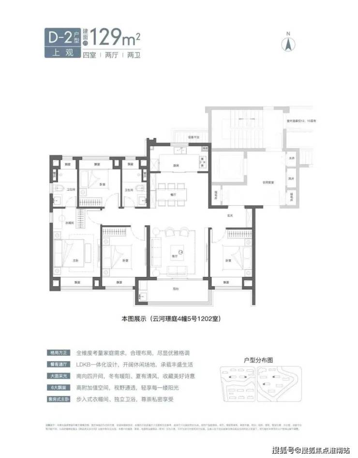 预算充足的小伙伴可以入手建面约129㎡4房2卫。4房+大面宽+大阳台,尺度感和空间感都相当强,也给予600万级购房者在虹桥改善的好机会!