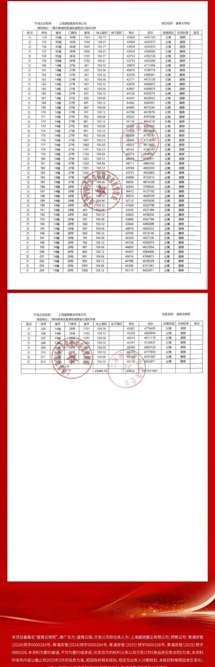 青浦新城「盛青云锦」加推212套建面约103-197㎡3-5房,均价44522元/㎡