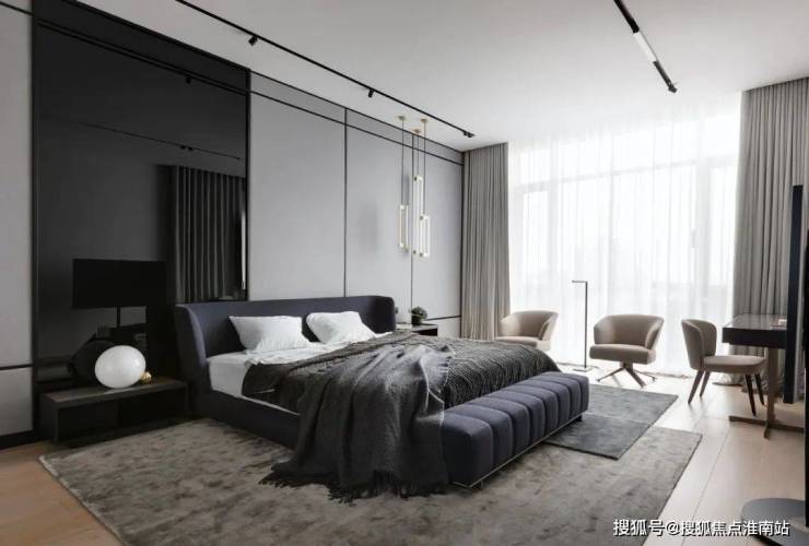 主卧空间不多矫饰,以现代主义的高度理性,减少陈设的构成元素,于现代极简主义中流露出简约之美,保持冷静和理性,直观地洞见到美与奢适的统一性。