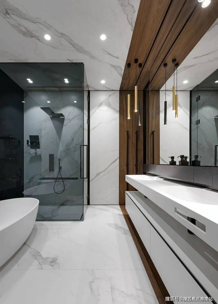 主卫地板和墙都是以白色大理石为主,高端大气,精致与时尚,让整个空间更有时尚艺术感。