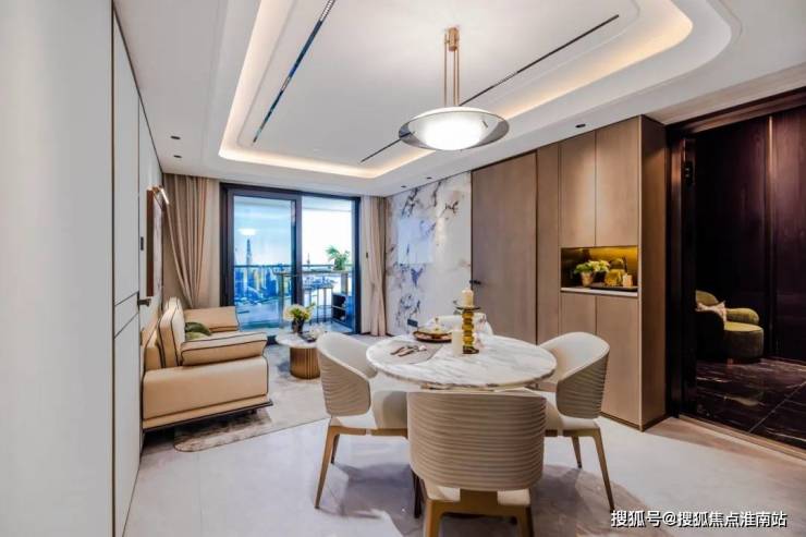 同时外接约270°阔景阳台,社交区域方正宽敞。