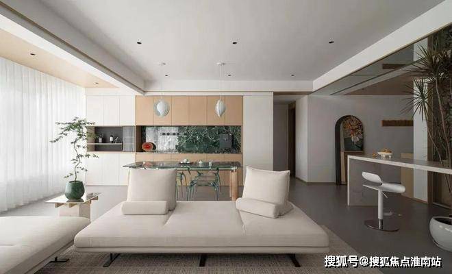 餐厅的设计同样注重整体布局与简洁的线条,大面积使用原木与Prada绿岩板,为空间增添了自然的质感,营造出沉稳且有序的美学氛围。
