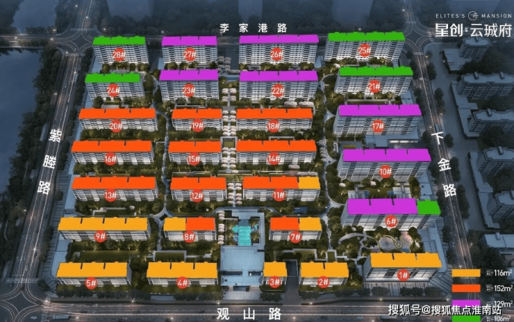 洋房:7层,116方(四房)和152方(4+1房),共计615户。