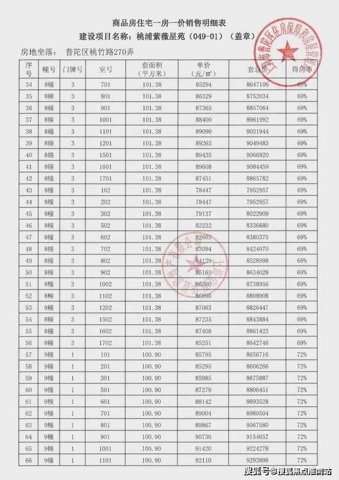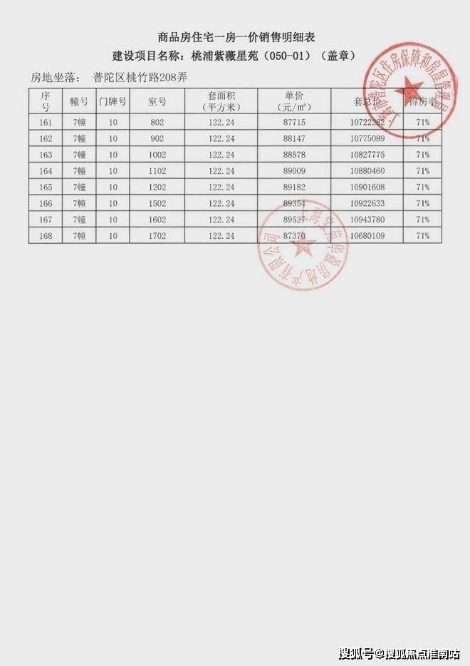 项目一房一价表▼