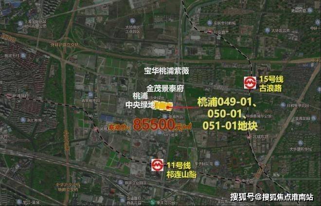 2023年8月,上海二批次土拍,宝华&东苑以总价328800万元成交普陀区桃浦科技智慧城(W06-1401单元)049-01、050-01、051-01地块,地块出让面积30126.9㎡,容积率2.5,溢价率4.05%,楼板价43655元/㎡,房地联动价85500元/㎡。
