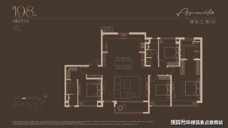 建面约198㎡4房户型,嘉定“收藏级”传世大宅!塔尖人士的挚爱之选!2梯2户的设计,子母双开门礼序入户,私密尊崇门厅,彰显尊崇生活仪式感。
