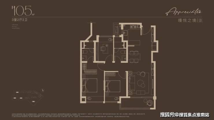 建面约105㎡3房户型,总价400万级即可上车!堪称同等总价段的改善天花板!三开间朝南,约9.6米大尺度南向面宽,最大程度揽光入室;客餐厅一体化 ,连接厨房和南向阳台,动线流畅,也是更大的欢乐聚场;创新研发S墙设计,预留冰箱专属位置,释放厨房使用空间 ;主卧套房设计,奢享独立卫浴和衣帽间,尽享尊崇。