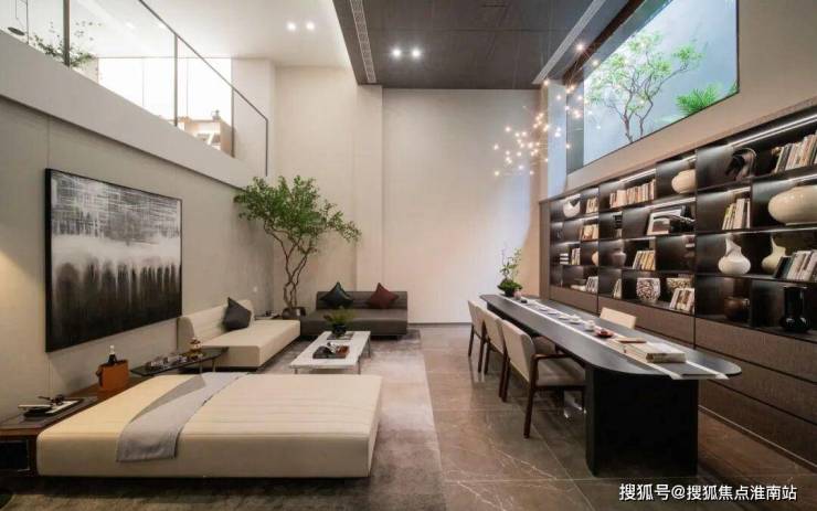看一眼外立面,白色石材、香槟色的木纹铝板、大面积玻璃的拼接组合,怎么看都不像一个门槛只有400万+的低密叠墅。玉琮水景、山石跌水等等融入景观的大量良渚文明元素,弥漫着专属于杭州的千年气韵。满眼的“越级感”再配上只有1.2的超低容积率,最终才呈现出一座全低密真双叠大盘的样子。