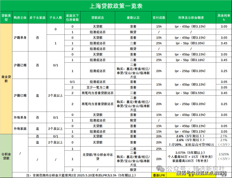 二套:首付25%,所购住房位于自贸区临港新片区以及嘉定、青浦、松江、奉贤、宝山、金山的,首付20%,利率五年期(含)以下2.525%,五年期以上3.075%。