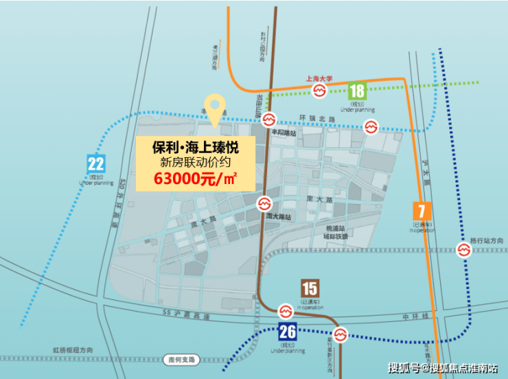 除了地处科创高地之外,「保利海上瑧悦」还紧邻上海科创引擎线:地铁15号线。「保利海上瑧悦」直线距离地铁15号线丰翔路站仅约500米。