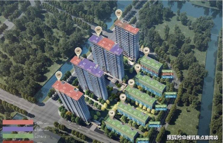 项目规划有4栋14-16F高层及5栋4-5F叠拼,容积率2.0。共计267套商品住宅,主力包括建面约120㎡、145㎡高层户型;建面约208㎡、216㎡叠拼!