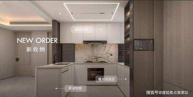 尤其还做了大容量的餐边柜,包括展示品、小家电、常用物、酒品零食、冰箱储存、备品6大收纳区,简直是强迫症的福音!
