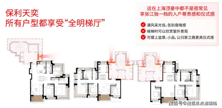 据统计上海700-1000万级新房项目,全明梯厅大部分都是大户型豪宅专属,即便是均价20万的顶豪,也很少实现这种设计。