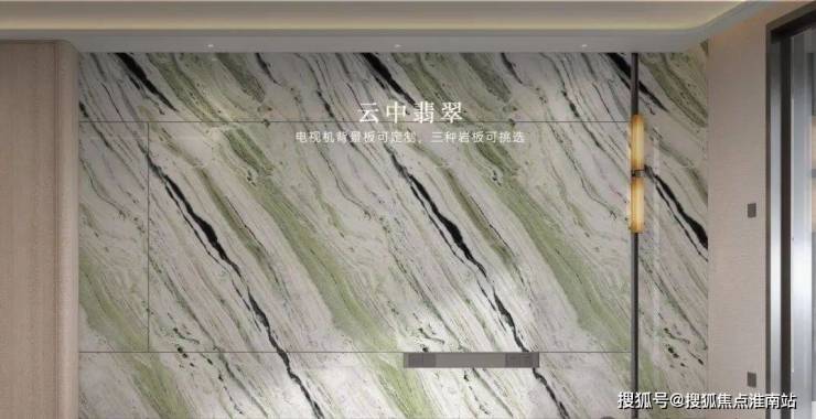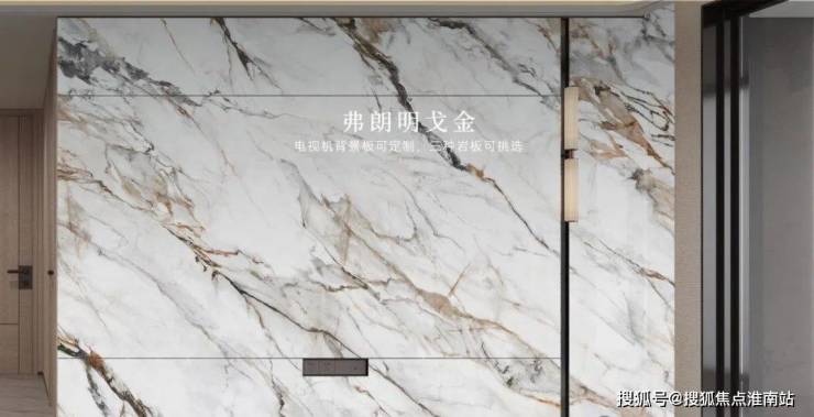 充分考虑业主的个性化需求,在电视背景板提供了新潘多拉、云中翡翠、弗朗明戈金三种结晶釉面岩板选择,成本更高,施工难度也更大。