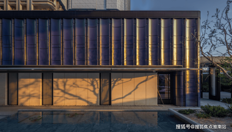比如,选取珍珠蓝、香槟金、海派砖红等色彩,约270°圆弧建筑立面。