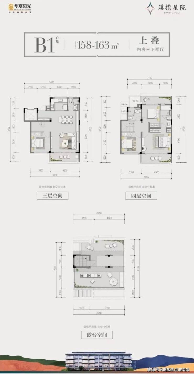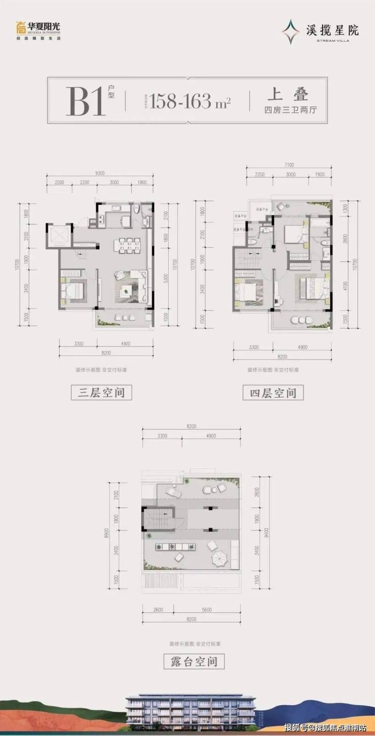 建面约158~163㎡上叠:顶层景观阳台/餐客一体连厅/套房式主卧/舒奢三卫设计