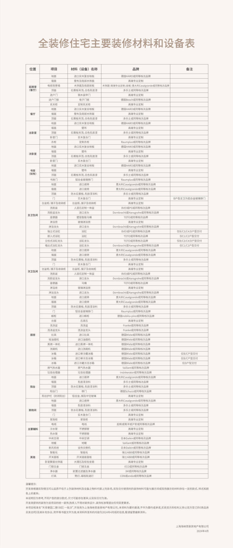 厨房配置了国际顶级厨电品牌之一的美诺Miele(或同等档次品牌):蒸&烤一体机,两灶三眼灶台,洗碗机,抽油烟机及冰箱的5件套超高规格,全面提升厨房“含金量”。