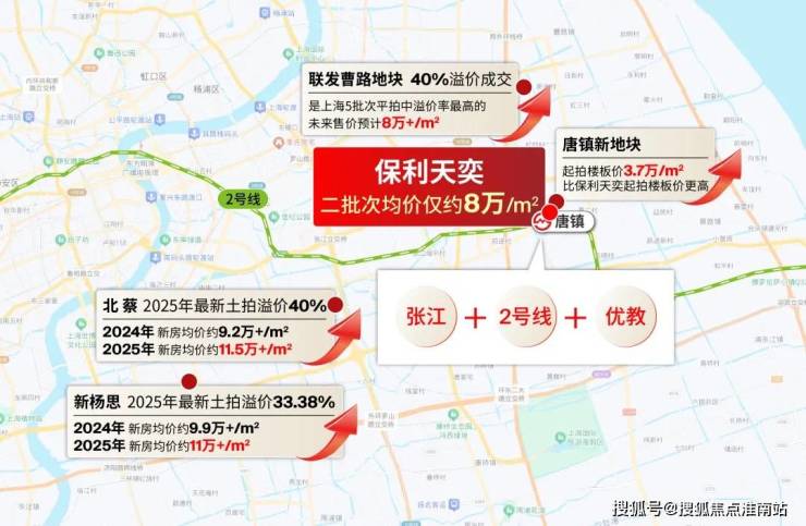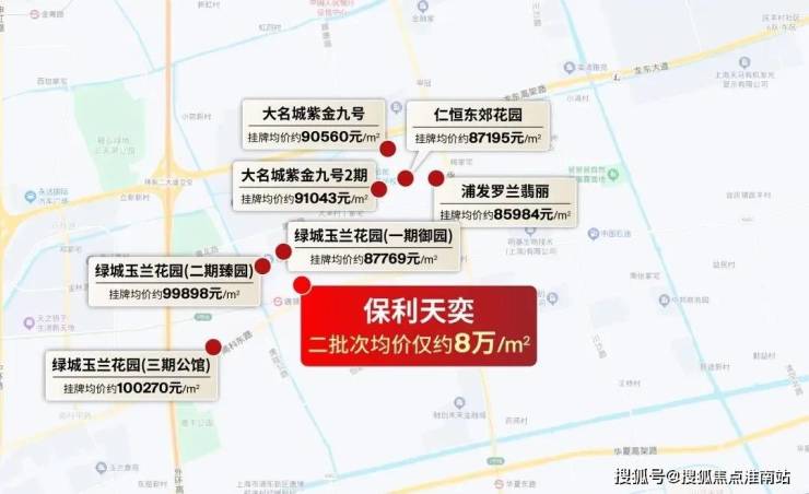 北蔡、新杨思最新成交地块溢价30-40%,新房价格预期纷纷站上11万/m²,位置更远的曹路在刚刚过去的5批次土拍中,以最高溢价40%成交,未来新房预期甚至可能要迈过8万/㎡大关,相较之下,均价仅约8万/m²的保利天奕,成为了当下浦东新房市场的“价格洼地”