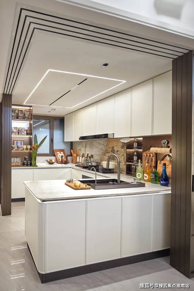 厨房巧妙划分餐具储藏、调味品置、餐具存放、展示物品放置、备用物品五大功能区,让锅碗瓢盆各得其所