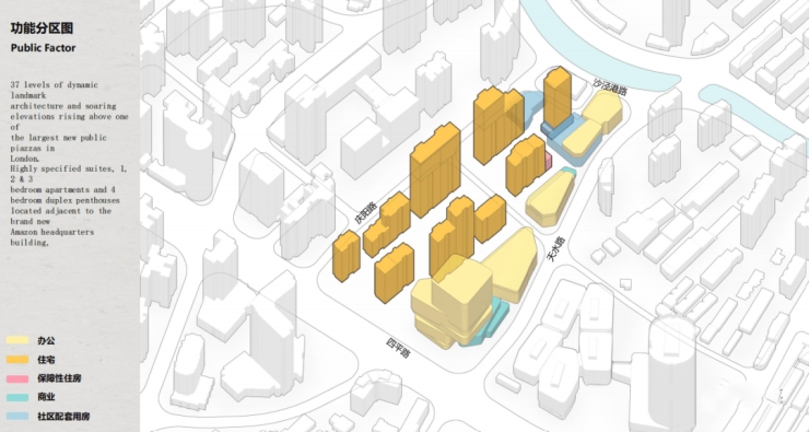 南面基本上是办公+商业: