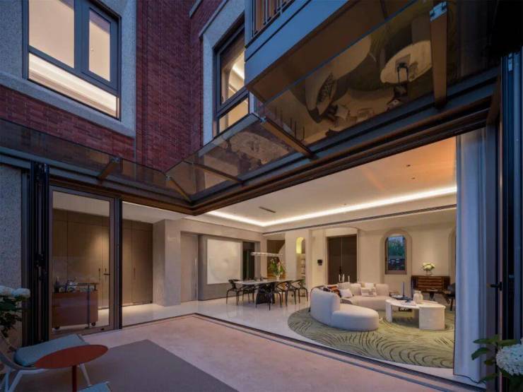 这个270°的转角玻璃是可以打开的,打开后花园与室内空间无界相连,让居者与自然的“无间亲密"重新回归。