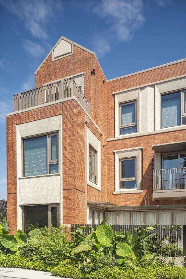 每一处细节都可以看出翠湖滨江的极尽用心——精巧的红砖镂空景墙、房檐上隐约可见的山茶花雕花、极具海派韵味的石库门、石材斜切面的窗套。
