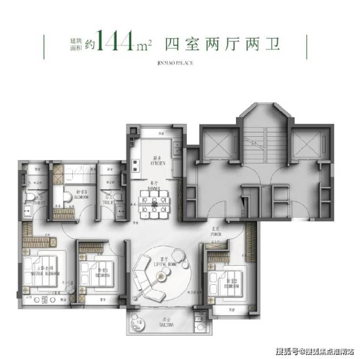 项目推出建面约114、126、144㎡3-4房,偏改善,满足不同家庭需求。