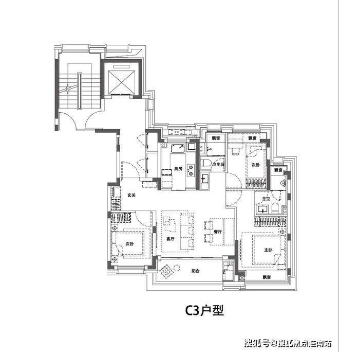 尤其你看项目建面约102㎡的C3户型,格局上超越了传统意义的三开间朝南,客厅面宽高达约5米外接差不多尺度的阳台,真正实现3.5开间,让业主起居之间沐浴更多阳光的同时,公区尺度感也直逼其他项目建面约100-120㎡户型。