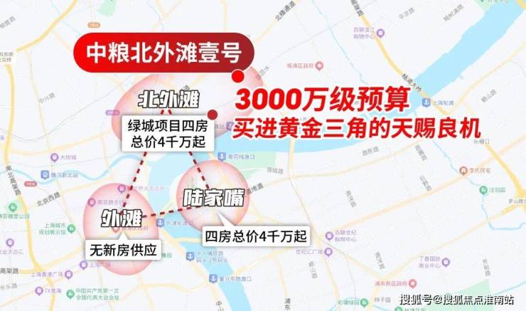 中 粮北外滩壹号拿地更早,同样属于北外滩红线范围里,与绿城项目几乎呈现掎角之势,而据知情人士透露,该项目的预计价格仅约15-16万/㎡,项目主推建面约185-228㎡四房,总价约3000万级!如果属实,这个价格无疑是北外滩错过再无的抄底机遇!