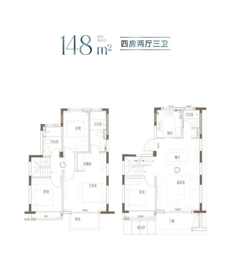建面约148m²的宽境4房,拓宽空间尺度;大开间、进深短,通透采光;主卧独立卫浴,优雅随心的寝居感受。