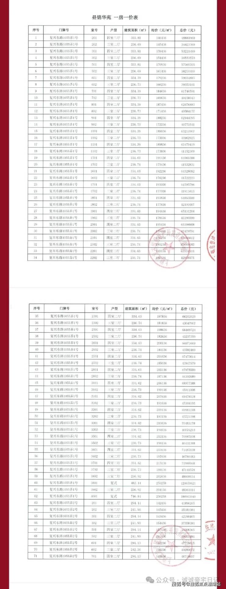前期一房一价表