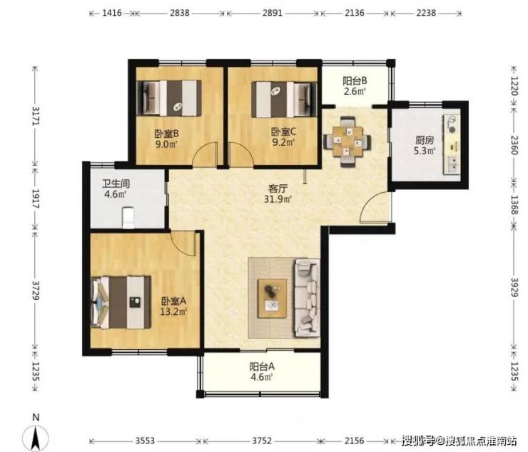 两房:80.97m²▼