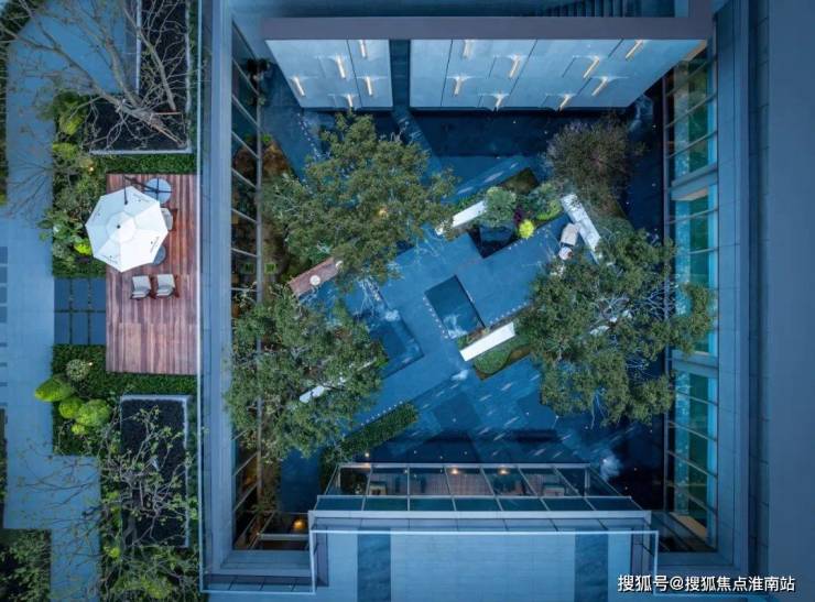 园林景观呈现得更加完整,参考江南民居“四水归堂”合围而成的庭院,勾勒出一幅动人的中国传统山水画卷。