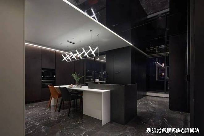 设计师采用【爱力蒙特∙黑金帝国石】地面通铺,独特的浓郁黑色底色,自带无尽视野纹理舞动地闯入,多元文化沉淀的石材,在灯光的映衬下,赋予空间奢雅而高级的气息.推动人与场域建立共鸣与自洽的美好连接.