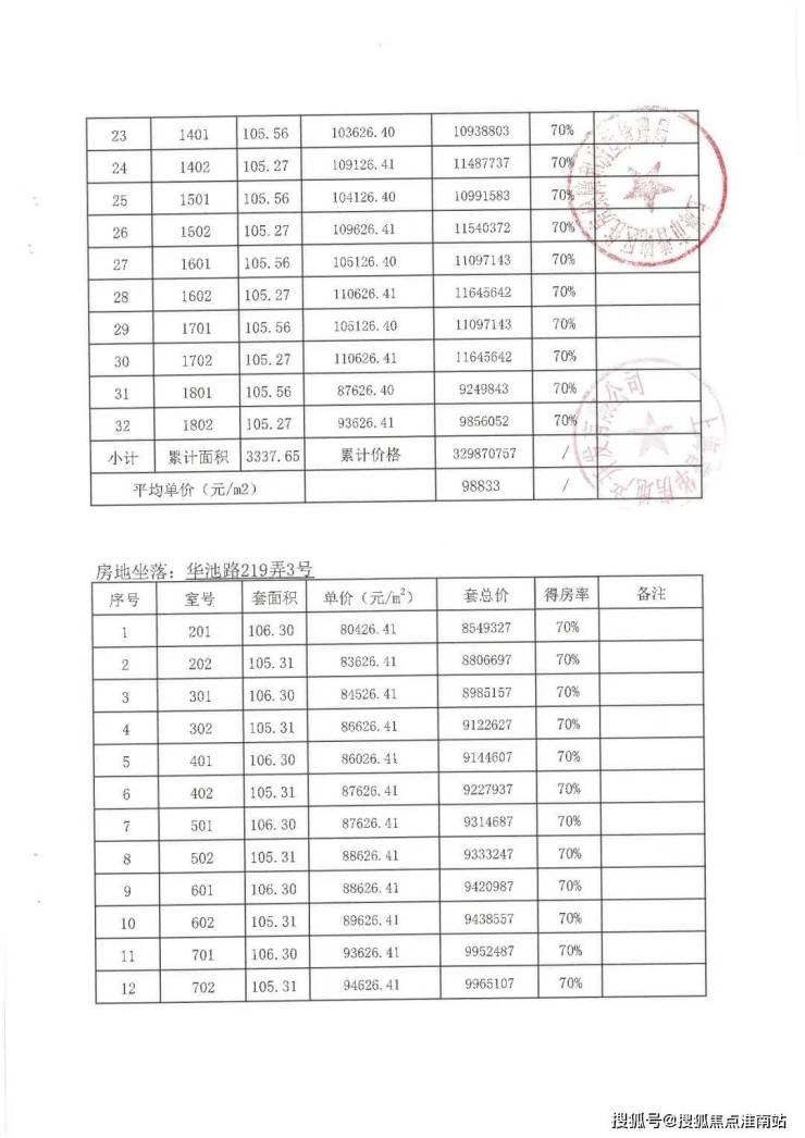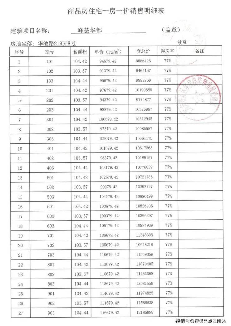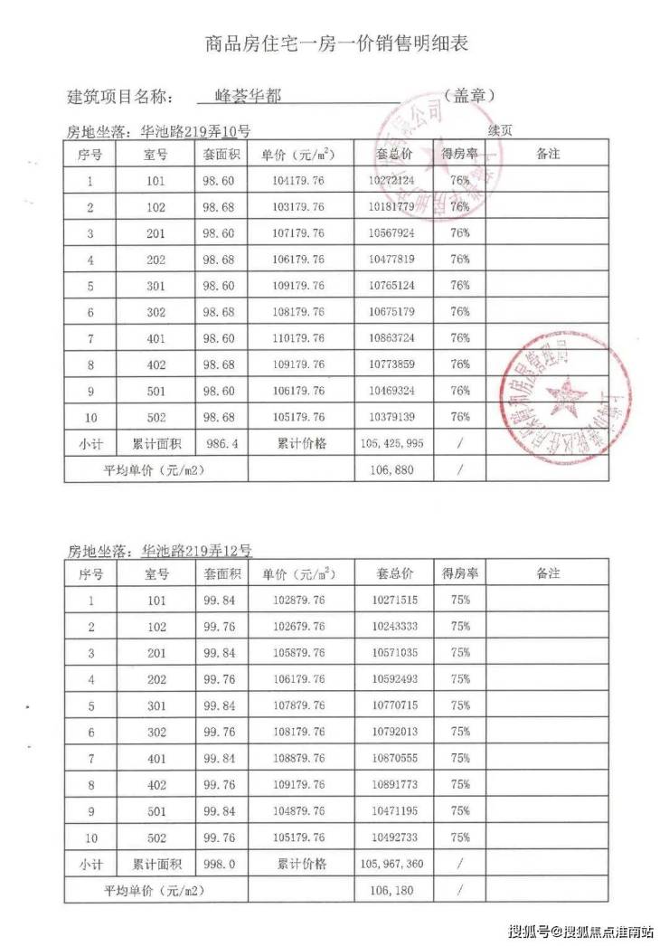 大华峯荟一房一价表
