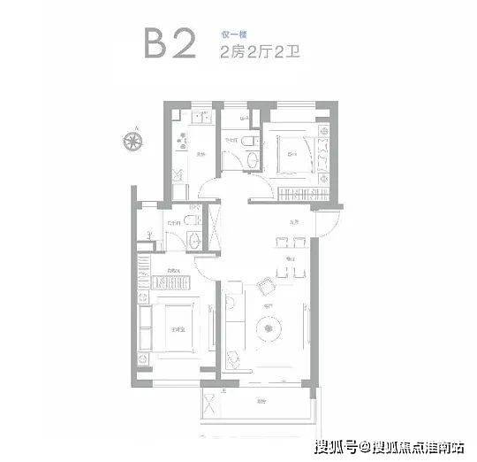 (B2)户型:约90㎡2房2厅2卫